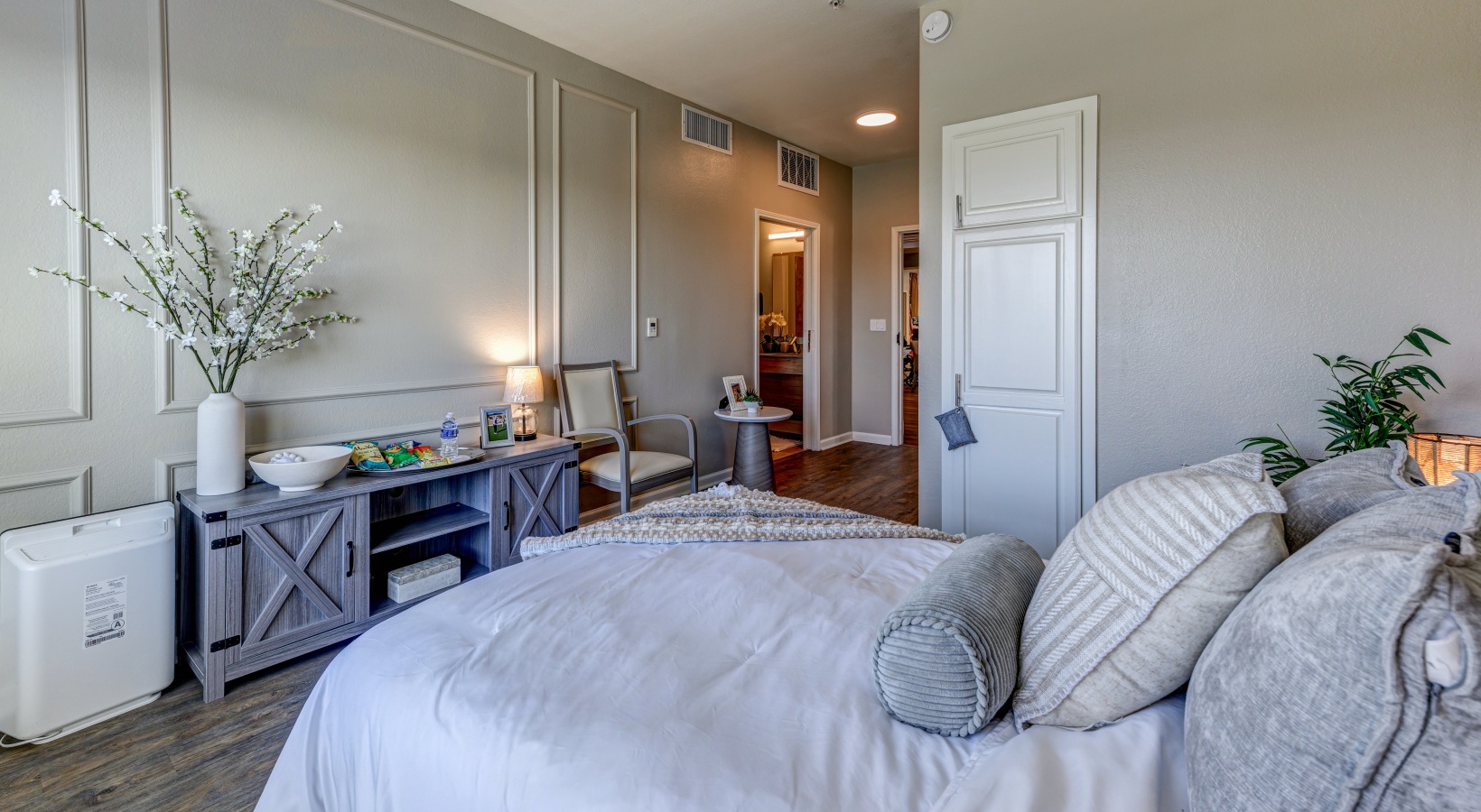 • Spacious bedroom with cozy bed and dresser